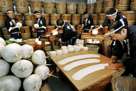 聖護院かぶらを薄切りにし「千枚漬」の漬け込み作業をする法被姿の熟練職人=京都市伏見区 二十四節気 『立冬』 【季節の言葉105】
