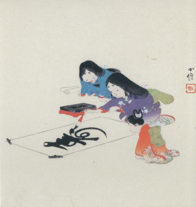 三代長谷川貞信 『書き初め』 関西大学図書館 蔵 北野天満宮「筆始祭と天満書」 (京都の休日244)