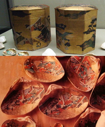 「源氏絵彩色貝桶」貝合せは三六〇個の蛤貝を左右で合せる遊び。婚礼調度品 京都『かるた始め式』 (京都の休日246) 本日、正月三日は『かるた始め式』です。