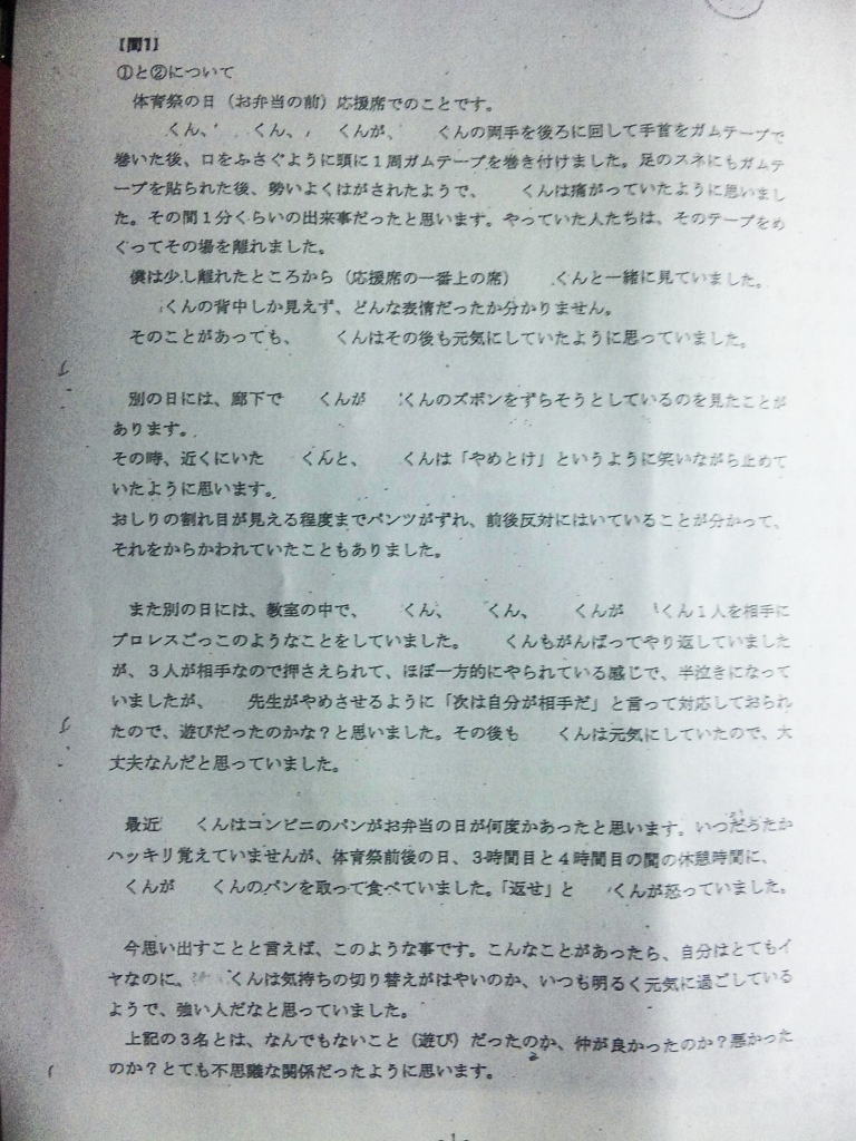 ◆誠への苛め◆ 教科書への中傷的な落書き、清掃用具入れに閉じ込められての失禁、体育教師の宮崎信一(斉藤洋介)による執拗な体罰、写真部顧問の新見悦男(加勢大周)による嫌がらせ。誠の精神状態は限界に達していた。しかし、不幸にもクラス担任の森田千尋(桜井幸子)はおろか、唯一の理解者となり得るはずの父親の衛も、誠の異変が苛めによるものであることを見抜けなかった。最終的には、彼が助けたはずの元いじめられっ子の武藤和彦(黒田勇樹)は誠をいじめるグループのリーダーになってしまう。一方、親友であるはずの留加は、深層では誠に想いを寄せる一方で、ある者の罠により芽生えた誠への不信感の感情の欠片と、彼を助けることによる報復の恐怖が交錯した、不安定な精神状態となっており、誠の心の支えにはならなかった。そして、誠への苛めはピークに達する。ウサギの血を抜いた注射器、和彦がそれを誠に突きつけたとき、誠は自ら自分の命を絶つ選択をする。