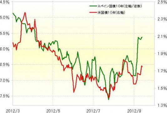 <資料>スペイン10年金利と米10年金利 今週は久しぶりに77円台へドル安・円高となりました。すると、財務大臣も円売り介入の可能性を示唆する発言でけん制しました。私は、この円高は持続的にはならないと思っているので、介入はやらないと思いますが、もし持続的な円高になって介入をやるなら最短シナリオは9月19日でしょう。 興味のある方は、"つづきはこちらです"をクリック! |