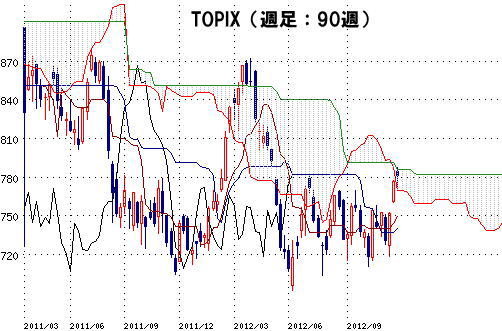 来週の日本株の読み筋=日経平均で9500円台回復、TOPIXで「雲」抜けに期待 来週(12月3日-7日)の東京株式市場は、日経平均株価で9500円を意識した展開か。材料になり得そうなものは、米国の経済指標か。11月のISM(米サプライマネジメント協会)製造業・非製造業景況感指数や、11月雇用統計などが発表される。米国経済の強さが確認されれば、ドル買いが強まる可能性が高まってくるだろう。 円高修正の動きを追い風にした上値追いの流れに乗って、心理的フシ目の奪回が期待されるが、年内の上値メドとしていた投資家も多いため、利益確定売りも重くのしかかる。11月30日の取引時間終了後にドル・円が82円台後半、ユーロ・円は107円台半ばで推移しているが、9500円台を回復するには「いったん売りをこなす必要がある」(中堅証券)という。 一方、TOPIXは一目均衡表の「雲」が上値抵抗帯となっている。日経平均と比べると出遅れ感が強いが、「雲」自体は薄く、上抜けの期待も膨らみやすい。