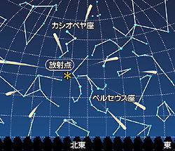 三大流星群の一つ「ペルセウス座流星群」が13日未明に出現のピークを迎える。晴天であれば、1時間に30個を超す流星を見られる可能性がある。国立天文台は「下弦の月の明かりはあるが、13日未明に最も多く観察できそう。夏休みに星空をゆっくり眺めてほしい」と話している。 ペルセウス座流星群は、スイフト・タットル彗星(すいせい)が軌道上に残したちりが、地球の大気圏に飛び込んだ際に光を放って起きる。流星はペルセウス座にある放射点(中心点)から放射状に飛び出すように見える。全国で観測でき、13日をはさんだ5日間は出現が期待できるという。 国立天文台は、観察に適した11日夜から15日明け方にかけて、「夏の夜、流れ星を数えよう」キャンペーンを実施している。観察した流星の数や時間などの報告をインターネットで受け付ける。詳細は同天文台のホームページ(http://www.nao.ac.jp/)で。【足立旬子】 ・・・ってことで、本日深夜(深夜0時)ごろから天体観測!! PR |
