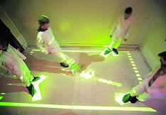 懐かしいピンポンゲームをインタラクティブな インスタレーションにした映像。 どうやら足を追跡するようにしているみたい。