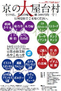 京都市勧業館みやこめっせ(京都市左京区岡崎成勝寺町)で10月4日、 同イベントでは、京料理、中華、イタリアン、フレンチなど京都の有名店19店が屋台を出店。京料理・木乃婦からは「鯛の笹巻き」「鯛の潮汁」、祇園さ々木からは「ジャコと湯葉の炊いたん」「焼き飯パフェ」、イタリア料理カーサビアンカからは「特製ラザーニア」「猪のサルシーチャ・トスカーナ風」、創作中華 一之船入からは「特製春雨ラーメン」「焼売」など、各店自慢のメニューをそれぞれ2品ずつ合計38の料理を出品する。 同イベントを共催する「あまから手帖」編集部デスクの住吉さんは「常々京都や関西を盛り上げていきたいという、料理人さんたちと我々の思いをようやく形にすることができた。今回のイベントは豪華なラインアップに目を見はる一日限りの夢の“饗宴”」と語る。 「こうしたイベント運営は初めてのことで、ノウハウも足りないと感じる部分や、集客人数の見込みがつきにくい部分もあるが、それぞれがもうけようというのではなく、お客さんに喜んでもらえる祭りにしようと考えている」とも。 開催時間は11時~16時(売り切れ次第終了)。 ■□━━━━・・・・・‥‥‥……………………………… 京都発信のブログにも関わらず、当ブログを観ている京都人の人口は この店の中で超お勧めなのが「マダム紅蘭」 PR |