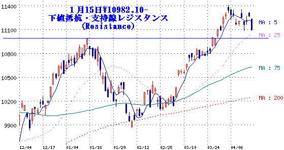 □ダウ工業株 11018.66(-125.91)▼1.13% 今回の下値抵抗・支持線(レジスタンス(Resistance))は、 デイトレは騰げ始めを確認したら飛び乗って、騰げが止まったら利確です。 『4/19 注目&注視銘柄』は、"つづきはこちらです"をクリック!