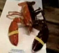 米国、ロードアイランド州ニューポート沖で捕獲された、 なんでも、5千万~1億分の1尾くらいの確率で起こる じゃぁ~ネットオークションに出品したら いやぁ~・・・絶対にワタシならネットオークションに出品するなぁ~・・・ Rare 1 in 50 million 2-toned lobster caught off the coast of Newport PR |
