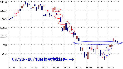 国内では、4月全産業活動指数、5月コンビニ売上高、アークランドサカモトが決算発表(21日)、パピレス、電算が新規上場、キリン堂、ニトリ、ツルハHDが決算発表(22日)、イオンモールが決算発表(23日)、参院選公示、5月企業向けサービス価格指数、5月貿易収支、トータルメディが新規上場(24日)、6月末権利付最終売買日、5月全国消費者物価指数、6月東京消費者物価指数(25日)などが予定されている。 株主総会は、サンキャピタル、高純度化、日立建機、富士通、バンナムHD、ANA(21日)、住友化、電化、田辺三菱、コニカミノルタ、オムロン、NEC、エプソン、住友商事、みずほ、商船三井、JR東海、NTTデータ(22日)、帝人、アステラス薬、コスモ石、神戸製鋼、ブラザー、セガサミーHD、東芝、シャープ、日産自、タカラトミー、三井物産、郵船(23日)、JT、東レ、ヤフー、新日鉄、千代建、アドバンテ、三菱重、トヨタ、ホンダ、ユニチャーム、川崎船、NTT(24日)、日水、大林組、資生堂、出光興産、パイオニア、デンソー、京セラ、三井造船、富士重、リコー、伊藤忠、T&DHD、セコム(25日)などが予定している。 海外では、国際捕鯨委員会年次総会〔~25日モロッコ・アガディール〕、テニス全英オープン(ウィンブルドン~7月4日)(21日)、FOMC〔~23日〕、イギリスが、緊急予算案を発表、独6月Ifo景況感指数、米2年国債入札、米6月リッチモンド連銀製造業指数、米4月FHFA住宅価格指数、米5月中古住宅販売件数、米ABC消費者信頼感指数(22日)、米5年国債入札、米MBA住宅ローン申請指数、米5月新築住宅販売件数、FOMC誘導金利目標(23日)、アップルが、新型iPhone「iPhone4」を各国(日本含む)で発売、サッカーW杯1次リーグ日本vsデンマーク戦、NZ1-3月期GDP、米7年国債入札、米5月耐久財受注、米新規失業保険申請件数(24日)、G8サミット〔オンタリオ州~27日、26~27日はG20サミット〕、米1-3月期GDP確定値、米ミシガン大学消費者信頼感指数(25日)などが予定されている。 提供:株式会社T&Cフィナンシャルテクノロジーズ ■□━━━━・・・・・‥‥‥……………………………… 上記チャートを観て戴きたい。 こんなチャート、良いワケが無いワケでして・・・・・ ただ、上にも行きやすいのですが、下にもリスクがある状況・・・・ グズグズしながら『騰落レシオ』が騰がって行けば どちらにせよ、「変化日=6月21日」なので 但し騰がる場合は、いつ下の「窓」を閉めに掛かるか? PR |