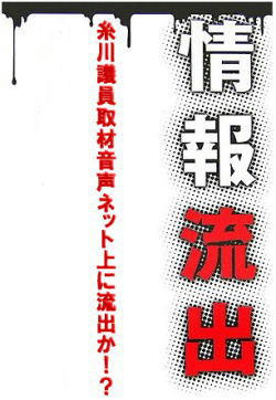 糸川議員取材音声ネット上に流出か? 毎日元記者録音データ 毎日新聞東京本社社会部の元記者(41)が、国民新党の糸川正晃衆議院議員(32)を取材した際のやり取りを録音したICレコーダーを取材協力者に提供していた問題で、ICレコーダーからコピーされたと見られる音声データがインターネット上に流出していたことが分かった。毎日新聞社は「内容を確認したうで、必要な措置を検討する」としている。