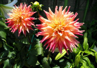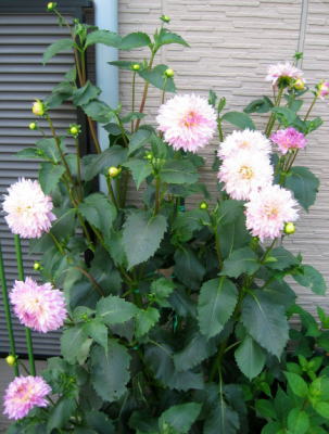 ダリアの(香華:コウゲ)です。アップの写真も加えました。 まだまだ蕾(つぼみ)が沢山ありますので、これからもまだまだ咲き続けます。 ちなみに高さは2メートルを越えています。