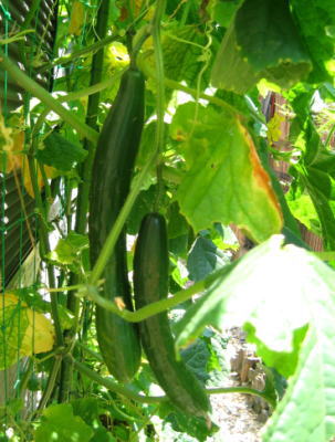 キュウリです。相変わらず1日2~3本ペースで獲れます。 食べきれないので、日々あちらこちらへ配っています。