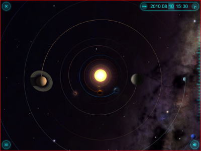 京都新聞サイトが『10日前後、7惑星ほぼ一直線に』というタイトルの記事を掲載している。作花一志京都情報大学院大教授によると、「10日前後には地球を含め7惑星がほぼ一直線に並ぶ」との事。 つまり、太陽系の惑星が直列にピィーーーンと並ぶという事? これはすごい現象だ! すごい一体感を感じる。今までにない何か熱い一体感を! ファンタジーだ! しかし、地球から夜空を見てもキラキラと星が光っているだけで直列に並んでいるという実感が沸かない……。 そこで思い出したのが、『iPad』や『iPhone』のアプリケーションソフト『Solar Walk』(ソーラーウォーク)だ。このアプリは、リアルタイムに太陽系の太陽と惑星の動きをシミュレーションできるもので、現在の惑星の位置や、未来や過去の惑星の位置を知る事ができるスグレモノ! しかもリアルな宇宙空間を表現している人気のアプリでもある。 この『Solar Walk』を使って2010年8月10日前後の太陽系をシミュレートしてみれば、直列に並んでいる惑星を見ることができるのでは!? ということで、さっそく『iPad』で『Solar Walk』を起動させ、ギュィィィィィィィィィンと8月10日までタイムスリップ! すると……、確かにほぼ直列に並ぶ太陽系の惑星たちの姿があった! これはスゴイ! 本当に直列に並んでいる!! 完全に直列にはなっていないものの、ほぼ直列と言っていいくらい惑星たちが並んでいる。もしかすると、重力や何らかの見えない力によって、地球に影響が出るかも!? とりあえず、8月10日はちょっとファンタジーな気分になって夜空を見あげたいと思う。……『iPad』見ながら。 Solar Walk for iPad | tobu iPhone PR |