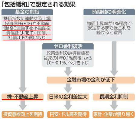 要するに、 ◆政策金利ゼロ ・・・・・にした上で、それ以上は政策金利は下げようが無いので、 ◆量的緩和 もやるぞっ!・・・・・って、言うことです。 ・・・で、それに加えて、 今回の超目玉は 1、日銀券ルールの枠外で長期国債を買い取る 2、ETFやREITを買い取る という点がとても凄い・・・凄い決断をしてくれたものだ!ブラボー♪