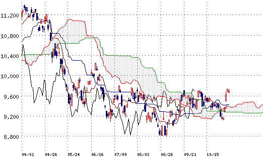 ▼上値抵抗▼ 9694.49 11月9日 終値 (-38.43円) △下値支持△ 9617.53 ボリンジャーバンド(第1標準偏差を25日移動平均に加えた水準) PR |