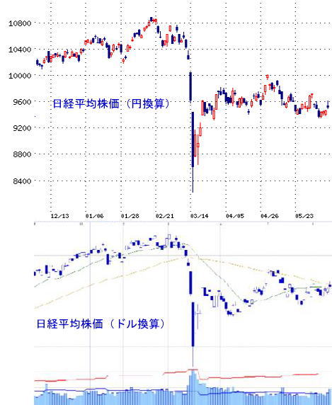 一方、ロイターが日本、英国、欧州大陸、米国の投資家58社を対象に行った5月の国際分散投資調査では、日本株へのアロケーションが昨年11月以来の最低水準となるなど、現時点で日本に強気になるのは未だコンセンサスとは言えないようだ。 日経平均は年初来7.5%安近辺で推移しており、震災発生前に上期の日本株のパフォーマンスに強気な見通しを示していたゴールドマン・サックスなどの期待を打ち砕いている。震災発生直後の安値からは約15%戻しているが、それでも震災前水準からは9%超安いままだ。 これは、震災は株価に織り込まれたが、復興はまだ織り込まれていないことを意味しているかもしれない。 投資家は、第1段階(震災)が終わって第2段階(復興)が始まる兆候を探しており、最近の金融当局者や大手企業経営者のコメントから、そうしたう動きを読み取ろうとしている。 2日に奈良市で講演した中村清次日銀審議委員は、日本の消費に前向きな動きがみられるとの認識を示し、「本年度後半にかけては景気回復テンポが高まる可能性が高い」と語った。 また生産についても、足元は大幅な減産が続いているものの、「以前の『まったく見通しが立たない状態』から『見え始めた』部分が次第に増えてきており、いくぶん前向きな動きとして評価できる」と述べた。 トヨタ自動車(7203.T)の豊田章男社長も4日、生産は速いペースで回復しているとし、「日本国内では今月に通常の90%の水準に回復すると見込んでいる」と語っている。 <誘惑の言葉> もちろん、こうした見方にすべての人が同意しているわけではない。基本的に貿易立国である日本は世界経済との結びつきが深く、世界経済に逆風が吹けば、日本にも当然影響するという議論は多い。 HSBCグローバル・アセット・マネジメントのチャーリー・モリス氏は「安いのは分かっている。ただ、変化を促す材料を見つけることができない」と語る。同氏が運用するファンドはベンチマークを追っておらず、日本株を組み入れていない。 しかし最大のハードルは、日本株の上昇が「間もなく訪れる」というストーリーをあまりに長く聞かされ続けてきたと感じる投資家の心情かもしれない。 1989年12月に史上最高値を付けた日経平均は、日本経済が景気後退(リセッション)に入ったり出たりする間、下落傾向が続いている。現在の株価水準は最高値から依然として約75%安く、米国のS&P総合500種が同じ期間に約260%上昇したのとは非常に対照的だ。 そうは言うものの、その期間の日経平均にも少なくとも10回程度の大幅な反発局面はあった。震災復興は、そうした反発局面を再び呼び起こすことができるだろうか。 (Jeremy Gaunt 記者;翻訳 宮井伸明;編集 加藤京子) ■□━━━━・・・・・‥‥‥……………………………… 日経平均株価の円/ドル換算チャートを見比べていただければ なので、今後が為替に振り回される展開なのでしょうねぇ~・・・・・ なにか米国指標で良い数字が出ればドルは上り、円が下がる為、 なのでQE2終了⇒米ドル下げ⇒日経平均下げ 上記記事内容があるため、グズグズ状態なんですよねぇ~・・・・・ 気長に個別銘柄を拾って儲けて行きましょうね。 PR |