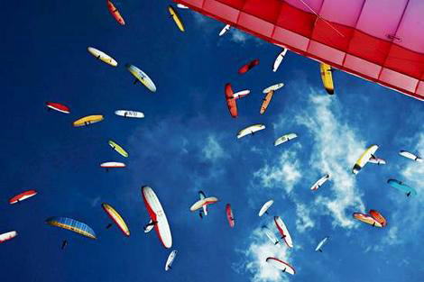 本日、7月31日はパラグライダー記念日です。 パラグライダー (Paraglider) はスカイスポーツの一種。 パラグライダーの原型はNASAの開発した、 スポーツとしてのパラグライダーは、1978年頃、フランスのスカイダイバーが山の斜面からスクエアーパラシュート(四角いパラシュート)で下りたのが始まりとされる。日本で普及し始めたのは1986年から。当初は滑空性能が低くスキー場のゲレンデを斜面と並行に滑空を楽しむ程度のもので飛行時間にして約3〜5分程度であった。日本のファルフォーク社が楕円翼を採用して飛躍的に性能向上を計ることに成功してハンググライダーのようなソアリング(上昇気流による長時間フライト)が可能になった。その後、各社とも研究が進み性能の向上は続き、現在では一般のフライヤーでも2〜3時間の在空時間や地上2000m程度までの上昇ができるまでになっている。 日本パラグライダー協会 Paragliding PR |