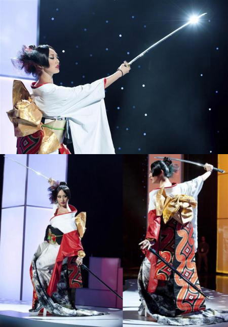 ミス・ユニバース日本代表、「椿と刀」テーマの衣装披露 ロイターNEWS 2011年 09月 09日 10:21 JST http://jp.reuters.com/article/entertainmentNews/idJPJAPAN-23106820110909