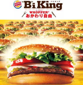 バーガーキングが今年も「WHOPPER」おかわり自由、11月1日から実施。 ナリナリドットコム 2011/10/14 19:07 Written by Narinari.com編集部 http://www.narinari.com/Nd/20111016501.html バーガーキング・ジャパンは10月14日、「WHOPPER」おかわり自由の「“B”iking(バイキング)」キャンペーンを今年も実施すると発表した。 期間は11月1日~15日の各日14時~23時、バーガーキングの各店で実施する。 「“B”iking」は昨秋も実施された、心ゆくまで「WHOPPER」を堪能したい人にピッタリのキャンペーン。「WHOPPER」系のLセットを購入した人に限り、店内でバーガー類をすべて食べた後、量に満足できなかった場合に購入したバーガーと同じ商品を満足するまでおかわりできる。 なお、おかわりの受付時間は、レシートに打刻されている時間から30分間限定。不正行為(食べ残し、持ち帰り、グループでの権利譲渡、ほか店舗で不正と判断した場合)を発見した際は、「おかわりいただいた商品相当額をお支払いいただきます」(バーガーキングより)とのことだ。 食欲の秋にピッタリな、「“B”iking」。「WHOPPER」をたらふく食べたい人は、挑戦してみてはいかが?