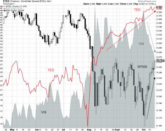 TEDスプレッドは平常時なら1%以下に収まっていますが、 ・・・って言われても難しいですよねぇ~・・・・・ 要は、ユーロ/ドルに対しての『恐怖指数』みたいな使われ方が出来ます。
