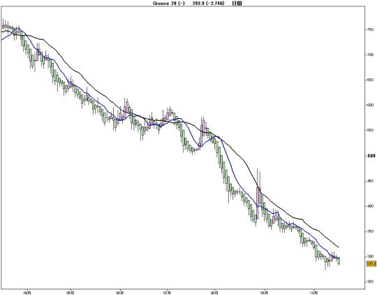 昨夜は、ユーロ危機が緩和してNYが騰げて引けましたが、 では、元凶である『アテネ証券取引所上場ギリシャ企業株』はどうなのか???