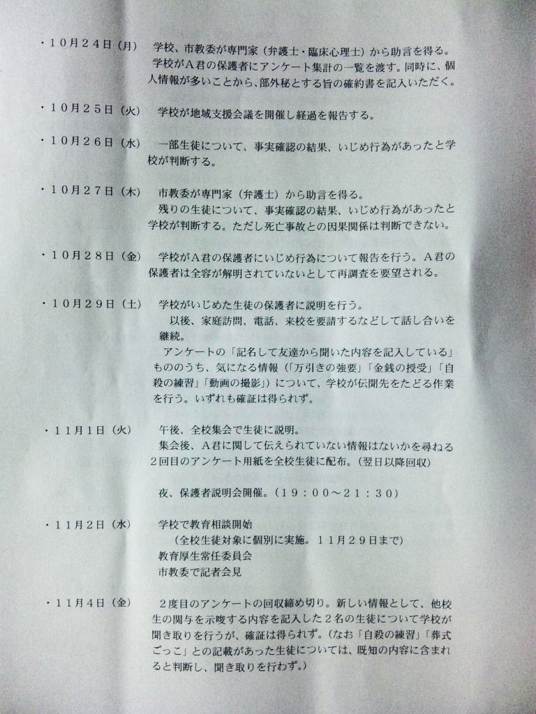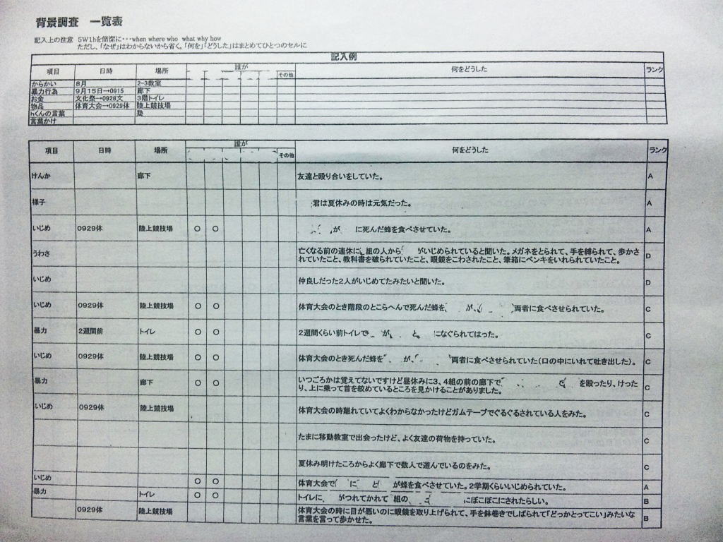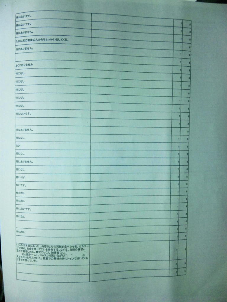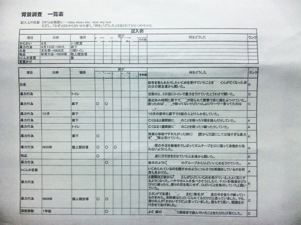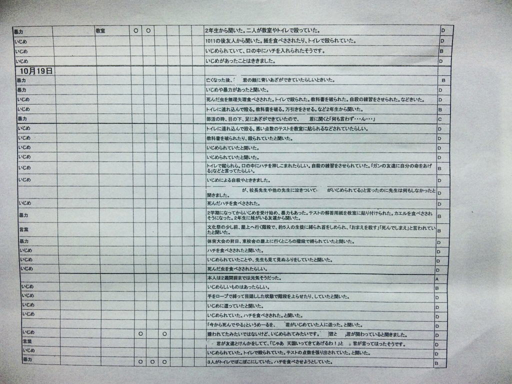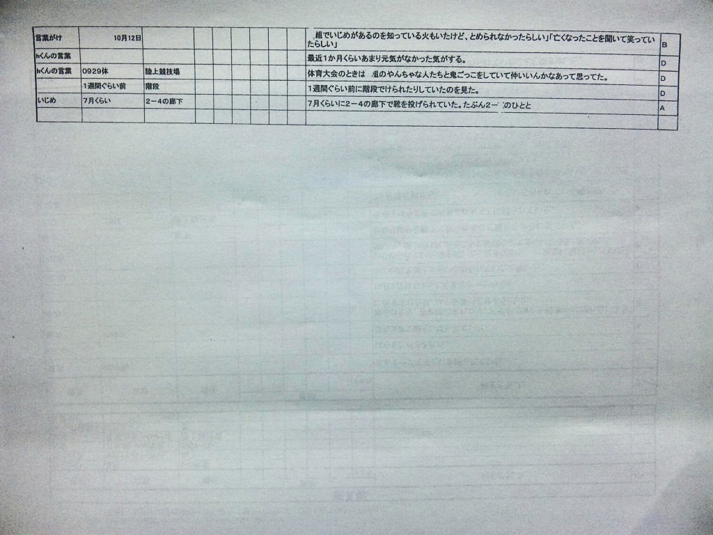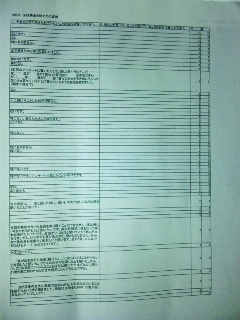 ◆エピローグ◆ その後、同級生の立場で誠をいじめていた和彦は、誠の幻影に怯え続け、発狂する。留加は昏睡状態を脱したものの、重度の記憶障害に陥っていた。 担任の森田は、全校集会で生徒を前にして言う。すべての人が誠を殺したということ。他者を傷つけることで生きている実感を持とうとしているのではないかということ。そして、自分を愛するように他者も愛して欲しいということを。だが、他の教師らは無責任にも聞くなと言わぬばかりに生徒を退場させ、少数の生徒しか残らなかった。拍手で森田の意見に賛同するその中には、誠らしき姿もあった。焼け石に水かつ学校側は最後まで隠蔽体質を貫こうとしたというのになぜか森田は新しい希望を胸に抱いていた。 人影の少ない駅のプラットホームにたたずむ新見。彼が何者かの手に押され線路に転落した直後、列車がプラットホームに進入した。