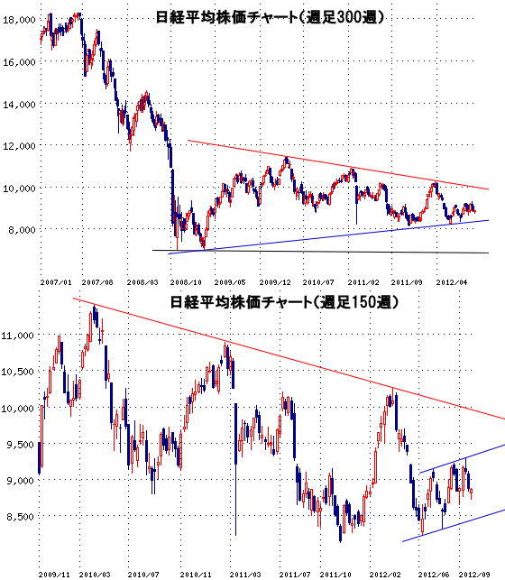 下記に日経平均株価チャート(週足)を観れば判ると思うけれども、