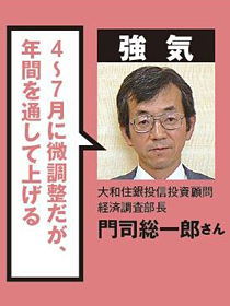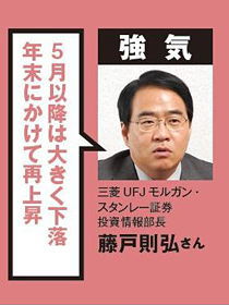 理由は米国景気の回復。「量的緩和が続く結果、米国の経済成長率は年前半で1.5~2%、年後半で2.5~3%と上昇。リスク志向を高めた海外投資家が日本株も買う」(三菱UFJモルガン・スタンレー証券の藤戸則弘さん)。