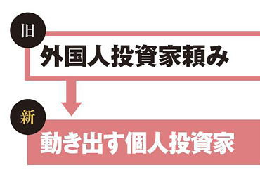 市場に参加する投資家の顔触れにも変化が訪れる。外国人の動きだけに左右されていた市場で、個人投資家の存在感が増す。それは、今までとは違う銘柄の株価を押し上げる力になる。