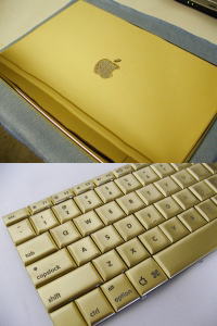 MacBook Proのボディーとキーボード、各種パーツを24金にビルドアップ。 $1200~$1500・・・ってことは、約 \140,000-~\175,000-程度ってことです。 Appleのロゴ等にダイヤモンドも埋め込めるらしいです。 ちなみに将来的には24KアルミニウムiMacも出るらしいですよ! サスガに先ほどのブログ記事で本日は終わらせると、なんとなく後味が・・・ COMPUTER CHOPPERS PR |