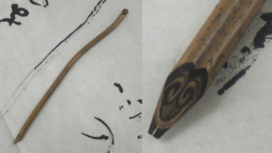 乾燥硬化させた蕨(ワラビ)を削ってディップペンに仕上げています。 渦巻き状の内部組織がペン芯の役割を果たすので、 ご好評頂いております竹ペン同様、筆記角度により様々な筆記が楽しめますよ。 価格はなんと¥630(税込み)!値段も渋いねぇ~・・・ 勿論!本物の蕨(ワラビ)を使っているので、一本一本微妙に形が違います。 これでちょっとしたメモなんかをするときに、 そのときは、鉛筆カバーの中に墨汁を浸したスポンジを仕込んだカバーを 勿論!ネット販売もしております。 一本いかがですか! 川窪万年筆店 PR |