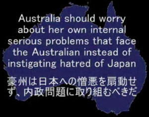 捕鯨問題で豪州を批判した動画が大きな波紋を呼んでいる 動画の内容は、日本の調査捕鯨に猛烈に反発する豪州政府の方針などを痛烈に批判するもので、豪州での人種差別暴動やディンゴやカンガルーといった動物の虐殺映像を使って、豪州人が持つ日本人や捕鯨への「差別」を克明に描いたものだ。 そこでは、人種差別運動の様子、殺されるディンゴ、白人男性がカンガルーの母親のお腹の袋から赤ちゃんカンガルーを取り出して足で踏みつぶす様子、さらには「鯨のフルコース」を注文した日本人男性が銛で刺し殺されるCMなどが流され、「次の犠牲者は日本人ですか?」「豪州は最も多くの動物を殺す国だ」 この動画は2008年1月8日夕方までに23万回以上再生され、動画のコメント欄には1万件を超える日本語・英語のコメントが書き込まれる「大炎上」の事態にまで発展している。コメントがこれほど大量に書き込まれるのはユーチューブでは異例の事態。コメント欄に書き込まれた英語の書き込みには、 「ジャップ(Japs)はキモいマンガとかアニメで"自分イメージ"を良く見せるよな。