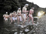 中日新聞 2008年2月8日 夕刊 三重県伊勢市の伊勢神宮内宮に近い五十鈴川で8日早朝、神職を目指す若者たちがみそぎ行事に臨み、神に奉仕する誓いを新たにした=写真。 参加したのは、同市の神宮研修所など全国7カ所の神職養成機関で学ぶ高卒以上の男女41人。4日間の合同実習中で、大多数が来年春から全国各地で神職になる。 空がうっすらと明るくなり始めた午前6時すぎ、河原に集合した。氷点下3度と身を切るような寒さの中、男性は下帯、女性は白装束姿。船の櫓(ろ)をこぐ動作を繰り返して体を温めると、いよいよ水の中へ。水温2度の水に漬かって、約10分間、身を清めた。