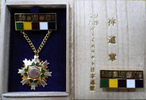 ワタシは小学生4年生から高校3年生の頃まで、実はボーイスカウトを まぁ~ボーイスカウトっていうのは、ほとんど同じ学校の子はいません ワタシが行っていたボーイスカウトのスポンサーが有名な神社でしたので 今のボーイスカウトがどうなのかは、ワタシは判らないのですが、 要は裕福な=資金が豊富な団と、貧乏な団と・・・ これはキャンポリーやジャンボリーと言われるボーイスカウトのキャンプ大会 ワタシが行っていた団は裕福だったので良かったと言えば良かったのですが、 テントから野営道具、持ち物に至るまで全てが違いました。 ・・・段々と暗くなって来た・・・ 話題を変えて・・・ 先程も言いました通りワタシの団は神社関係のボーイスカウトでしたので、 それが「神道章」(写真)と呼ばれる勲章のようなものです。 キリスト系のボーイスカウトには「キリスト教章」 ・・・と、ワタシの時代には3種類でしたが、現在では