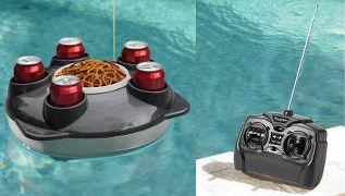 「remote-control serving tray」は、プールに浮かべて使うラジコンです。 これからの季節のひととき!!パーティ等の仕上げにどうぞ。 気になるお値段は$50です。日本円で\6,000-弱でしたらお安いのでは? Hammacher Schlemmer PR |