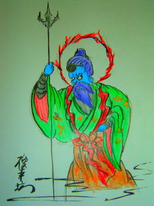 さらに、ウエクサさいの時に頂いた 紙片によれば: 僧正ヶ谷に牛若丸に兵法を授けたのは鞍馬山の大天狗である。 世にいう「天狗さん」は物語に伝説に大活躍するが、鞍馬の山では「護法魔王尊(ごほうまおうそん)」の使者としてお働きになっていると考えている。 護法魔王尊こそ天狗さんの総師である。 鞍馬山の本尊は宇宙の大霊であり大生命であり大光明、大活動体でありの 「尊天」と申し上げる。 そのお働き(エネルギー)は、水のこころのような慈愛のうるおいと太陽のような光と暖かさと、そして大地のような浄化の力として現れ、それらを人々に授ける。 この慈愛と光明と活力を、それぞれ千手観世音菩薩、毘沙門天、護法魔王尊の御姿で表し、三身一体尊天として本殿に奉安している。 尊像は三様であるが、時に応じ機に臨み、あるいは一体となって、あるいはそれぞれのお働きで、様々に応現する。 殊に大地の力の顕現としての護法魔王尊は太古より鞍馬の山にまします山霊であり、地球の霊主として、人々に希望、勇気、忍耐、決意と授け、破邪顕正のお力を奮い邪を真理の正道に改め導く。 時空を越えて飛行自在、変化自在、何時でもどこでも見守り見そなわし、どのような時でも心の中まで見透かしている。 その眼力から逃れることも隠れることもできない。 それ故んい人々は畏敬の念を抱き、あらたかな神として崇めてきた。 また地球の霊主、大地の力の神である護法魔王尊は、母なる大地がその懐に全ての生命を摂受(しょうじゅ)し、形あるのもとして再び地上に甦らせるように、再生の活力をも持つ。 見えるもの見えないもの、あらゆるものを清め、直くし、新生の姿、働きとして進化向上の力を与える。 五月満月の夜の祈り、祭儀においては、地上の全てを清め給え、人々を真智の光に導き給え、深き慈愛のみ心をもてすべてを護り給え、とあつき祈りを捧げる。 地上の清めと共に、人間の心の奥に隠れている汚れを清める「護法魔王尊」。 その指名をおび使者として働く「天狗さん」、混沌とした世相の今こそ、秘めたる御力を顕し、ご活躍くださることを切に希い、こころから祈っています。