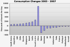 ポールソン長官は、上記ロイターNEWSを読んで戴くと判るように 原油の需要については7/2のNakedcapに面白い記事がある、 これは(上記グラフ)過去2年(2005-2007)の消費増減を示したチャートで、よく言われる中国インドの需要増があったことは事実、 しかし中国を除くと、収支はトントン、 大事なのは、今年2008年に入って、景気減速が本格化してきており、各国とも消費が一段と減少していること、データによれば、4月から中国も原油輸入が18ヶ月ぶりに前年比で3.9%の減少に転じた、又米国もMassive Drop in US Demand in Aprilで需要減速が鮮明化してきていると、 原油供給は、カタールの石油相が言っていたように、オーバーサプライが本当のところで、それを言い出せないのがつらいところ、 Oil markets are oversupplied but it would not be wise for any OPEC exporter to tighten the taps given the risk of exacerbating prices, Qatari Oil Minister Abdullah Al-Attiyah said yesterday. Attiyah's remarks came after Libya's most senior oil official said on Thursday he was studying the possibility of reducing output in response to a US threat to sue OPEC members, although he said the North African country had no concrete plans to do so for now. "It is not wise today to cut supplies even though there is a surplus because we do not want to create a psychological problem," Attiyah told Reuters. "I'm not in favor of it at all. We want to try to help to ease the psychological heat.