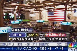 米証券取引委員会(SEC)のコックス委員長は24日、金融大手19社の株を対象とした空売り規制について、全銘柄への拡大を近く提案する方針を明らかにした。 同委員長は下院金融委員会で証言し、空売り規制を市場全体に拡大することを検討しているとし「間もなく提案を行う」と述べた。 また記者団に対し、大規模な空売りポジションの報告義務付けなど、新たな空売り規制を検討していることを明らかにした。 興味のある方は、"つづきはこちらです"をクリック!