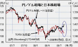 これらの連動が最近薄い、 円安になれば、輸出企業に恩恵で、