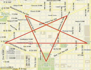 ワシントンD.C.でも歴史の古い界隈にAppleが巨大な総ガラス張りの店舗を出店しようとして反対にあっている。「デカ過ぎる」というものから、「モダン過ぎて、古い趣のある粋な建物ばかりのエリアになじまない」というものまで非難は様々だ。 でも僕はこういった不満は隠れ蓑で、実はその根底にはアップルとサタン、ホワイトハウスを巻き込むもっと壮大で不吉な陰謀が潜んでるんではないかと睨んでいる。ここではその自説を披露したい。 フリーメイソンの陰謀説を熱心に追いかけてる人は分かると思うけど、Washington D.C.という街を作ったフリーメイソンたちは、ホワイトハウスに至る大通りを線でつなぐと五芒星形を成すよう街路を配した。この逆さ五芒星の頂点に当たるのが、ホワイトハウス本体である。 で、この逆さ五芒星の頂点・ホワイトハウスからペンシルバニア通り沿いにもうひとつ新しい線を引いてみると最終的にはウィスコンシン・アベニュー1229番地(1229 Wisconsin Avenue)、つまりアップルストア建設予定地にまともにぶつかるのだ。 その地点に丸をつけ、今度はウィスコンシン・アベニュー1229番地からMストリートNW方向に等距離分下ってみよう。すると、五芒星の線が交わる交差点2ヶ所のド真ん中を突っ切って、最後はミステリアスな住所に至る。それがこの40 L PI NWにあるアパートだ。 アパートは、他ならぬサタン本人の仮の宿と見なすこともできそうだ。で、サタンのアパートからアップル・ラインの起点まで線を引くと、またまたホワイトハウスの真ん中を頂点とする三角形となって繋がるんである。 ちょっと面白い情報なので、地図に落書きして、サタンのアパートのストリートビュー写真も仕入れてみたけど、ここに書いた以上の情報は持ってないので政府やアップルの方はお願いだから問い合わせとか、してこないでください。僕なんて所詮は細かいところに目端のきく一介の温厚なガジェット記者に過ぎないので。ありがとう。以上で全部です。 [原文] 興味のある方は、"つづきはこちらです"をクリック!