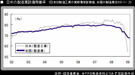 鉱工業生産の悪化ペースが徐々に鈍化していずれ下げ止まるとしても、そのことが「V字型」回復を保証するものではまったくないことを、十分念頭に置く必要がある。 設備稼働率について、入手可能な統計で日米の水準比較を行うと、日本の落ち込みがきついことが一段と鮮明になっている。日本の1月の鉱工業生産確報で、製造工業稼働率指数(2005年=100)は68.0(前月比▲12.9%)で、過去最低。実稼働率を試算すると54.1%になる。 これに対し、米国の製造業(SICベース)の設備稼働率は1月時点では67.9%で、日本よりも13%以上も高い水準にある(2月時点では67.4%)。米家計の過剰消費が削ぎ落としプロセスに入っている中で、輸出依存度が高い日本の製造業が受けたダメージには非常に大きなものがある。 また、日銀金融経済月報(2月)のBOXコラムが指摘したように、日本では米国よりも部品や素材の国内調達比率が高いことが、需要ショックの波及度合いを大きくしているという重要なポイントがある。 ということは、自動車や電機といった輸出主力産業の傘下にある中小下請けに対する業績面の強烈な下押し圧力(ひいては企業淘汰圧力)を通じて、日本経済全体がそれだけ悪化しやすいということである。 大手米銀の業績回復期待や、不良資産買い取り構想の詳細が近く発表されることへの期待、バーナンキFRB議長がTVインタビューで金融システムが安定化した場合という条件付きで年内リセッション終了という楽観シナリオを再度表明したことなどを手掛かりに、米株式市場では先行き楽観論が浮上し、売り方の買い戻しが誘われた。16日のニューヨークダウ工業株30種平均は5日ぶりに反落したが、下げ幅は小さなものにとどまった。 だが、そうした根拠の脆い楽観論に立脚した株高には、持続性に大いに疑問がある。 冷静に考えればすぐに分かることだが、雇用面を中心にリセッションが厳しさを増している中で、大手米銀の収益が急回復するということになると、原動力として考えられるのは、債券残高上積みによって長短金利差を享受するオペレーションくらい。信用コストは対企業・対個人ともに増加する流れであろう。 また、米大手銀トップが相次いで口にした1・2月の「黒字」というのはそもそも、保有する不良資産の評価損を考慮しないベースの話のようである。 米政府やFRBの景気・金融システム対策にしても、それが乾坤一擲の効果を期待できる筋合いのものではなく、経済政策の発動余地の限界が見えている中で、「持久戦」を選択して、決定的に負けないようしのぐためのものであることについては、筆者はこれまでのリポートですでに何度も伝えた。 G20を前に、ガイトナー米財務長官がなぜ、他の国々にGDP比2%超の追加財政出動を要請したかを考えてみればよい。要するに、自国にもはや余裕がない(米国債供給過多の問題と、議会の問題)から、他国に「応分の負担」を要請してきているというだけの話である。 バーナンキFRB議長が口にした、年内リセッション終了見通しについては、それが実現が非常に困難な金融システムの安定を前提にしていることを見逃すべきではない。 バーナンキ議長は2月24日に上院銀行委員会で行った証言で、「政府・議会・FRBが取った行動が奏功して金融システムが安定を取り戻す場合には、個人的な考えではそうした場合にのみ、リセッションが今年終わり、2010年が景気回復の年になるだろうという合理的見通しが成り立つ」と述べると同時に「米連邦公開市場委員会(FOMC)による最新経済見通しは、現在のリセッションからの十分な回復が実現するには2~3年以上かかるだろう、という見方を反映したものである」とも明言していた。 FOMCはすでに、「失われた4年」くらいまでは覚悟している。 世界経済に対する筆者の見方は悲観論で変わらないし、市場のベクトルについての見方もまた、不変である。長期金利は低下余地模索を再開することだろう。米国市場では国債の短期間での供給過重が問題になっているが、どんなにケーキが好きな人でも、一度に大量のケーキを食べることを強要されれば、「ちょっと勘弁してくれ」とばかりに身を引いてしまうだろう(長期金利の一時的上昇)。だが、ケーキが好きだという性質自体は変わらず、供給増加にメドが立つとともに、順調に「消化」していくのではなかろうか(長期金利の低下)。 国債需給悪化懸念というのは、映画に例えれば1つの「シーン」にすぎない。映画全体の「ストーリー」は変わっておらず、それは金利低下方向の内容である。また、今回の映画は日本の不良債権処理問題で起こった様々な出来事をなぞっている面が多いということからすれば「リメーク」とでも形容することができるだろう。景気・金融システムについて断続的に楽観論が浮上しては潰える流れもまた、同じである。 PR |
