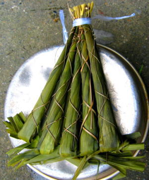 粽(ちまき)の葉は普通、笹の葉のようですが、 笹の葉は、殺菌効果には優れているのですが、 ワタシの周りでは、余り男性は動かない・・・風習が残っていて・・・ いやぁ~行って初めて知りましたが、大変な作業でした。 良く似た「葉」が2種類あって、白い線の入っている葉はダメ! 条件がいろいろとあり、しかも知り合い等に送る分や、 粽(ちまき)一本作るのに、葉が最低4枚必要ですので・・・ 昨日、午前11時ごろに帰宅した時には、既にヘトヘト状態でした。 もち米 50% 洗って天日干しを3~5日。 それを粉に挽きます。 その粉と砂糖と、少々の塩だけで そして葉で巻いてイグサの紐をかけます。 また熱湯に浸して炊きます。 そして水切りをして出来上がりです。 「葉」は使う前に湯通しして冷たい水で洗います。 写真は今日撮ったものです。 それでは、今から子供さんのいるご近所さんへ配ってきます。 それでは・・・また・・・ PR |